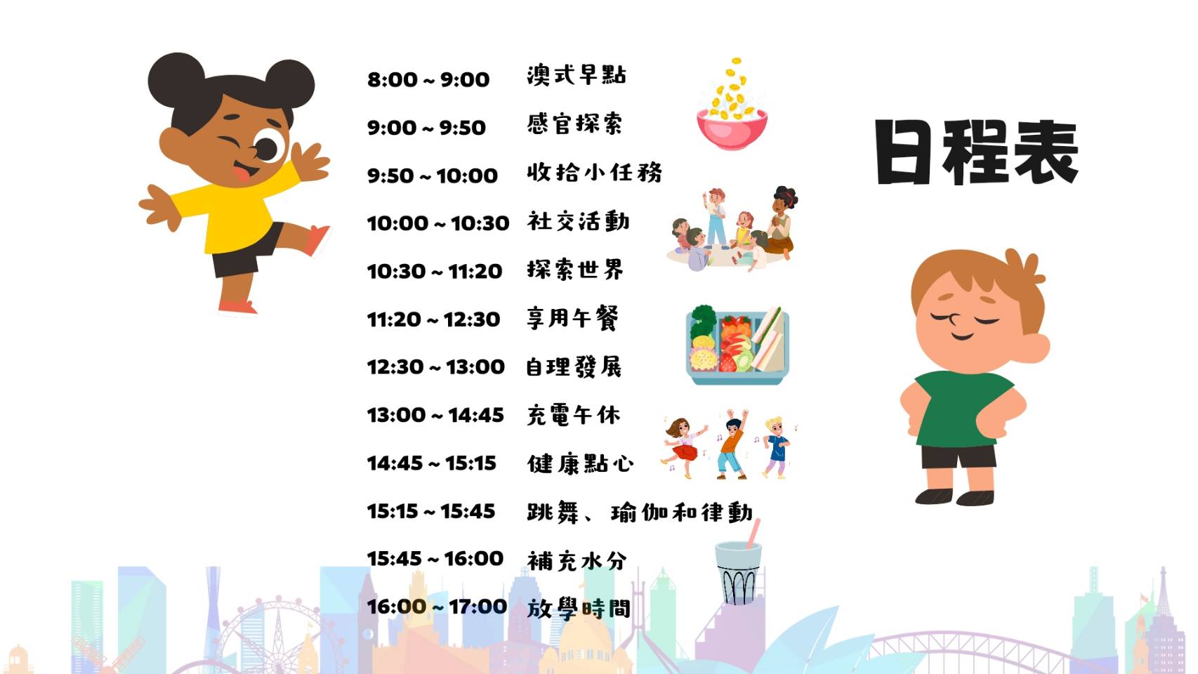 Discover Our Exciting Programs 為什麼將孩子送來澳蔓學托嬰中心是您最好的選擇? 我們致力與家長和照顧者組成育兒團隊,由專業老師陪您共同面對,找到孩子興趣專長以及發展方向。讓育兒不再寂寞,家長、孩子和照顧者一同安全快樂的學習發展。 每個孩子有自己的獨特性 澳蔓學相信每個孩子有自己的獨特性,我們不只尊重,更是支持孩子能夠發展出自我興趣和專長,並在較低的師生比下讓孩子獲得第一時間的支持與鼓勵,從而建立起孩子安全感、自信心和獨立性。 澳洲早期幼兒發展五大指標 澳蔓學以澳洲早期幼兒發展五大指標為教育核心,根據澳洲幼兒框架的觀點是:兒童的生活以歸屬感、存在和成為為主軸。最終通過自己的經歷學習和成長,塑造自己的身份和成為自信發展的成年人。 Explore Our Campus - Schedule a Guided Tour Today! 您喜歡因材施教的澳洲幼兒教育,想加入並與專業老師陪伴孩子共同快樂學習成長,歡迎預約參觀! 預約參觀 我們的中心 孩子在澳蔓學 各種不同探索的玩(感官、美術、實驗等)、學習認識自己身體(例如喝水、用餐和如廁等)和交朋友(朋友不分年齡,大家都是一起成長的夥伴),找到自己興趣和喜好(獲得自信心、勇敢和找到自我)。 家長透過澳蔓學 老師們的觀察紀錄分享報告,讓家長更瞭解自己的孩子,和孩子一起成長學習,確保和認識孩子在適當年齡需要練習和發展的方向,一起成為孩子最大的支持者和陪伴者。 進班流程 第一步 預約參觀 預約參觀 建議由家長先前來參觀了解(如因無後援需帶孩子來,請提前告知)可預約參觀時間為週四17:10約1~1.5小時請利用參觀表單或私訊臉書、Instagram預約如需要其他時間,請私訊或電洽 第二步 一對一 40分鐘 一對一 40分鐘 參觀且完成報名後,安排互相認識。家長與老師分享孩子的日常作息,並讓孩子與老師經由簡單遊玩互相熟悉。 第三步 繳交相關費用 安排入園與候補 根據匯款順序,與孩子的年齡依序安排入園。 如何報名? 1. 先填寫預約參觀表單提出申請。 2. 參觀後,保留名額費用5000元,依據匯款順序和孩子年齡,開始候補和入園。 3. 成功報名並入學後,註冊費用,一學期(半年) 60,000月費 21,000 保留名額費用5000元,折抵於註冊費中。 更多Q&A